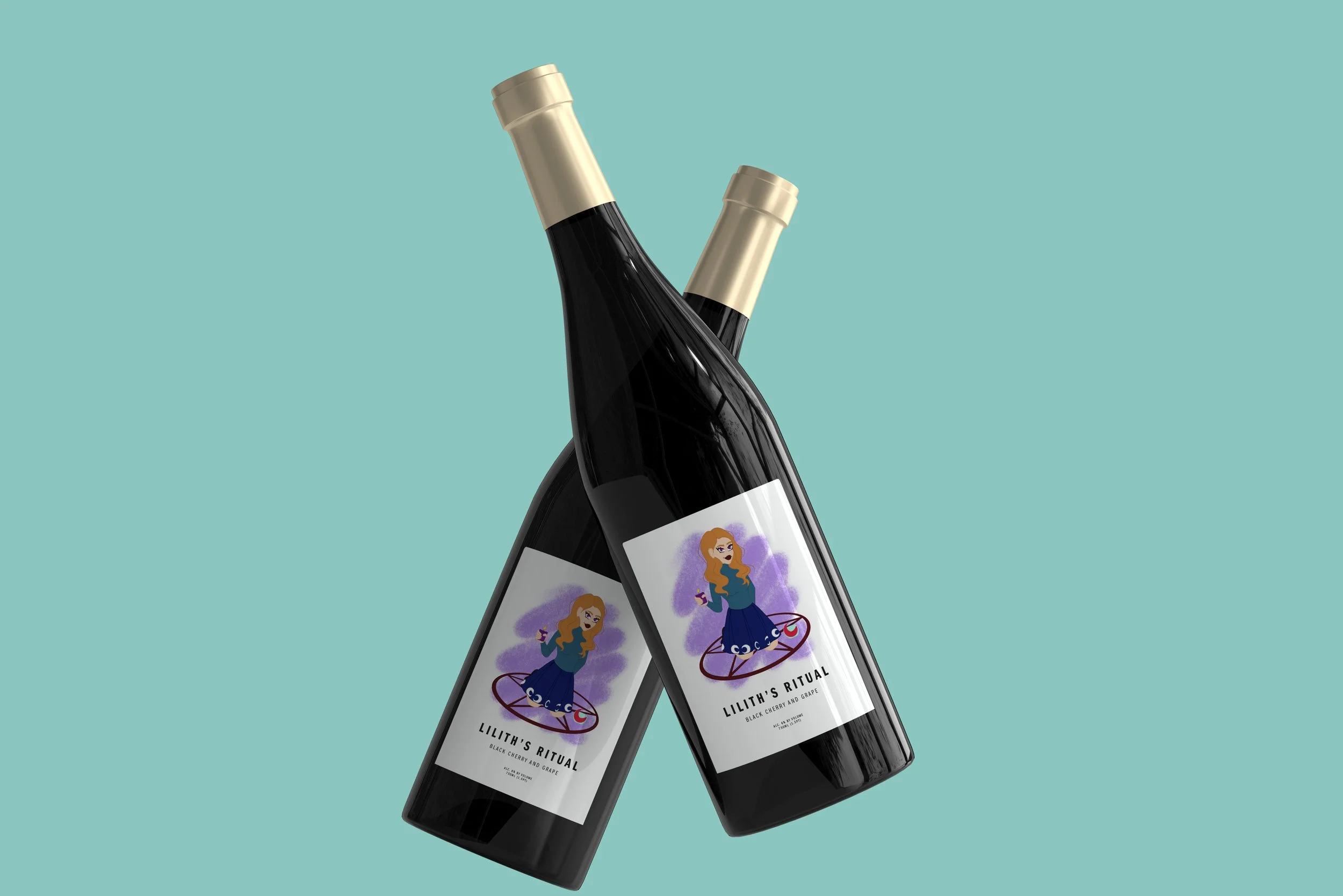 From the beginning of the project, I knew I wanted the wine labels to feature illustrated characters that embodied different types of witches. During the thumbnail phase, I explored two directions: full-body illustrations with environmental elements and simple portrait illustrations of each witch paired with its corresponding flavor. I ultimately chose the full-body illustration approach because it created a stronger visual narrative and gave each label more personality.
